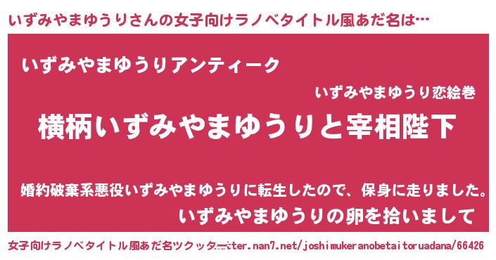 男性向けラノベタイトル風あだ名 | 『いずみやまゆうりに滅ぼされるだけの簡単なお仕事です』 |