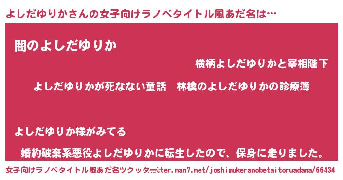 | 男性向けラノベタイトル風あだ名 | 『魔弾の王とよしだゆりか』 |