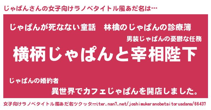 | 男性向けラノベタイトル風あだ名 | 『じゃぱんに滅ぼされるだけの簡単なお仕事です』 |