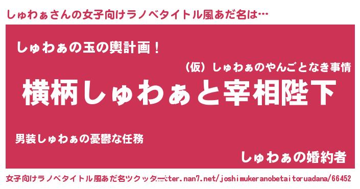 | ヘコむあだ名 | 『なまこ酢』『しゅふぇ~』『しゅを』 |