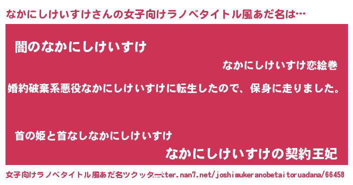 | 男性向けラノベタイトル風あだ名 | 『ナカニシケイスケスレイヤー』 |
