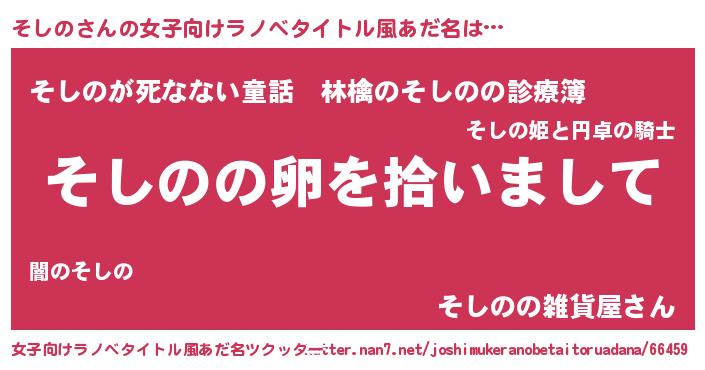 | 意味不明あだ名 | 『とにかく怪しいそしの』『自称そしの』 |