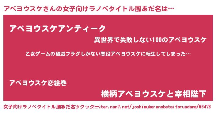| 意味不明あだ名 | 『住所不定無職アベヨウスケ(93歳)』 |