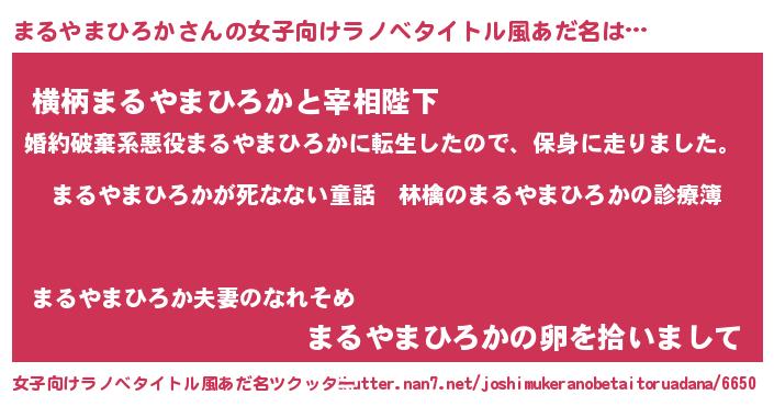 | 男性向けラノベタイトル風あだ名 | 『魔弾の王とまるやまひろか』 |