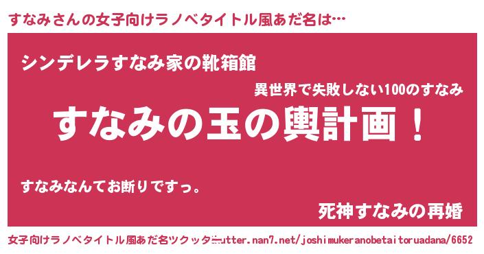 | 意味不明あだ名 | 『ヨモギ科すなみ属』『永久保存すなみ』 |