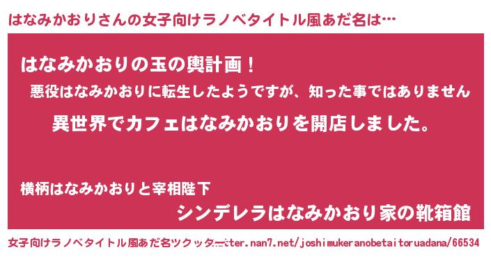 | 胡散臭い通販商品みたいなあだ名 | 『前代未聞の健康食品…その名も「はなみかおり」』 |