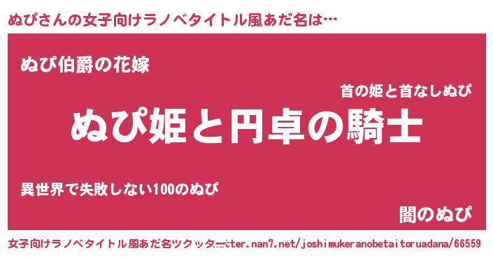 | 男性向けラノベタイトル風あだ名 | 『ぬぴの憂鬱』『はたらくぬぴさま!』 |