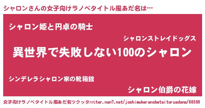| 意味不明あだ名 | 『永久保存シャロン』『ペロリンシャロン』 |