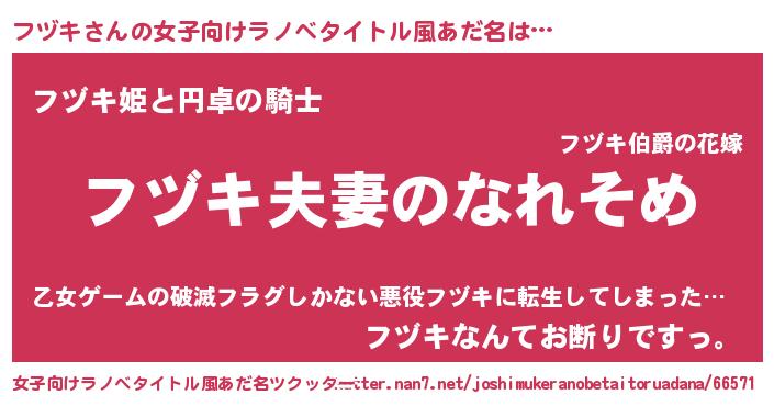 | ファンタジー風あだ名 | 『クインフット』『フヅフェル』 |