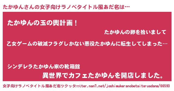 | 男性向けラノベタイトル風あだ名 | 『この素晴らしい世界にたかゆんを!』 |