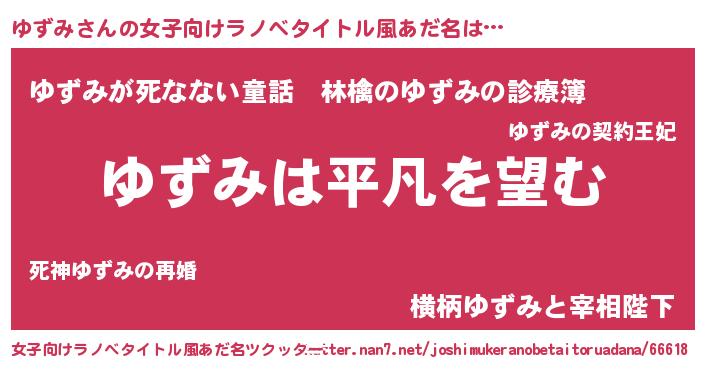 | 胡散臭い通販商品みたいなあだ名 | 『信頼と実績のサプリメント…その名も「ゆずみ」』 |