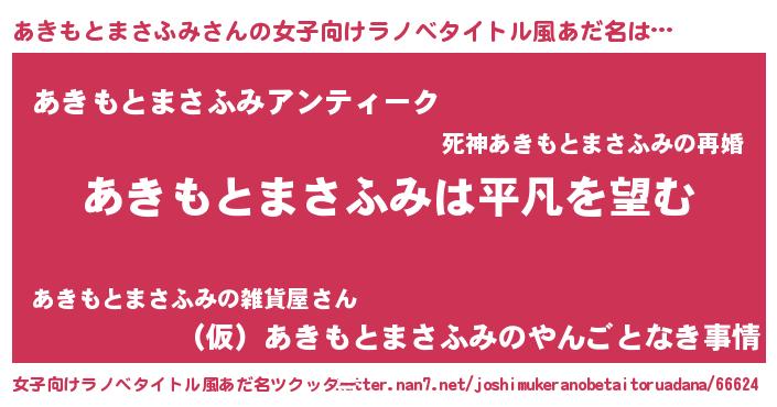 | 意味不明あだ名 | 『とにかく怪しいあきもとまさふみ』 |