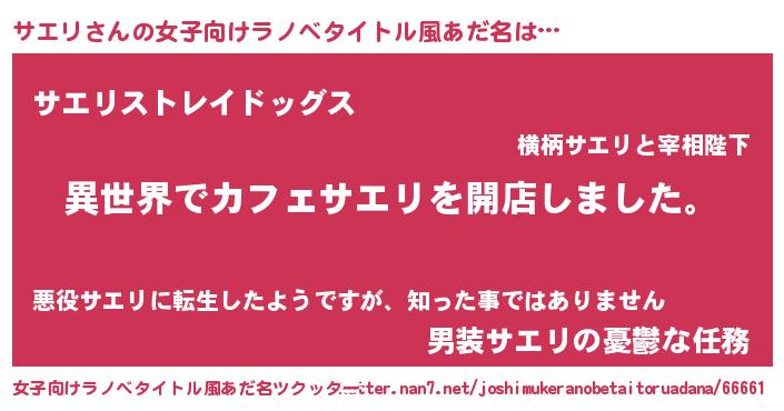 | 男性向けラノベタイトル風あだ名 | 『誰もが恐れるあのサエリが、ぼくの専属メイドになるようです。』 |