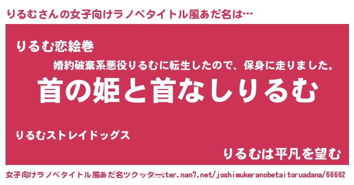 | 男性向けラノベタイトル風あだ名 | 『はたらくりるむさま!』 |