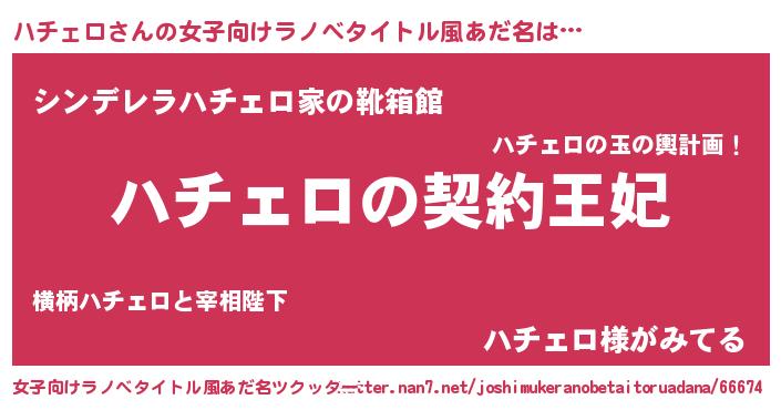 | 男性向けラノベタイトル風あだ名 | 『誰もが恐れるあのハチェロが、ぼくの専属メイドになるようです。』 |