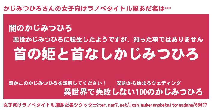 | 男性向けラノベタイトル風あだ名 | 『はたらくかじみつひろさま!』 |