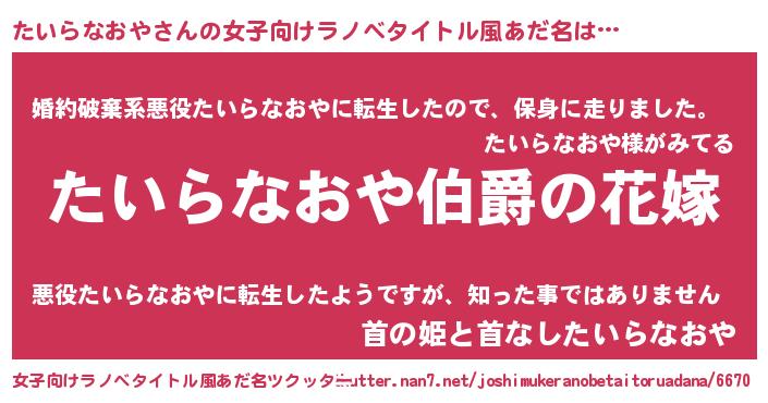 | ファンタジー風あだ名 | 『エターナルタイラナオヤー』 |