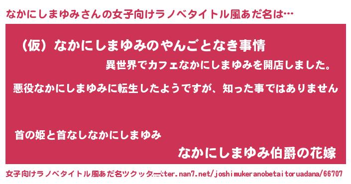 | 男性向けラノベタイトル風あだ名 | 『この素晴らしい世界になかにしまゆみを!』 |