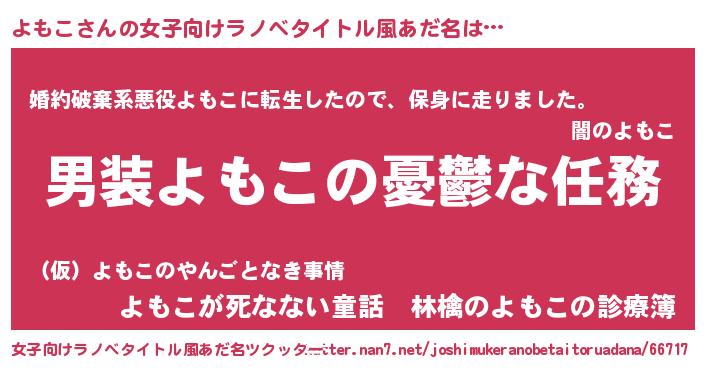 | 胡散臭い通販商品みたいなあだ名 | 『あなたにだけ特別に提供する100年もののヴィンテージワイン…その名も「よもこ」』 |