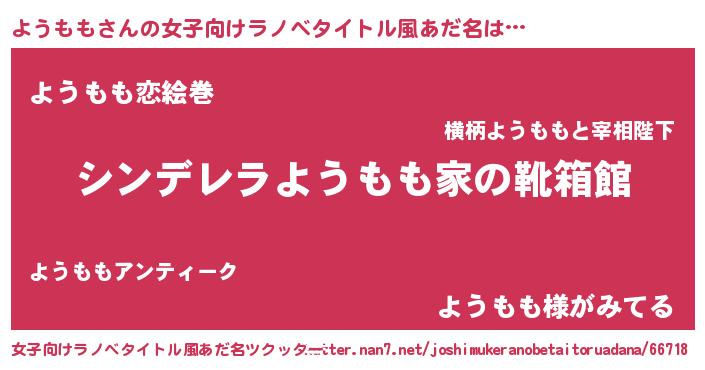 | ヒーロー風カッコイイあだ名 | 『友情の使者ようもも』『魔戒騎士ヨウ』 |