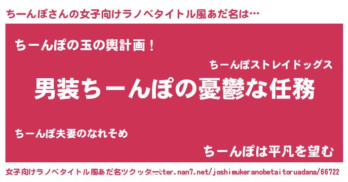 | ヒーロー風カッコイイあだ名 | 『炎刃騎士チー』『最強戦士チーンポ』 |