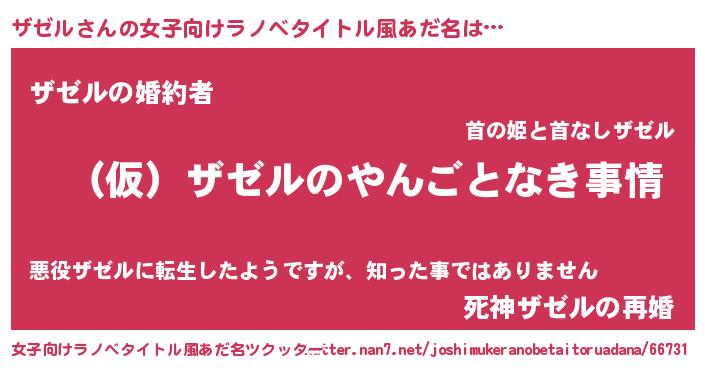 | ファンタジー風あだ名 | 『ザゼフェル』『エターナルザゼルー』 |