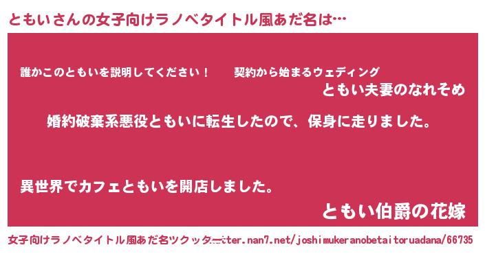 | 男性向けラノベタイトル風あだ名 | 『転生したらともいだった件』 |