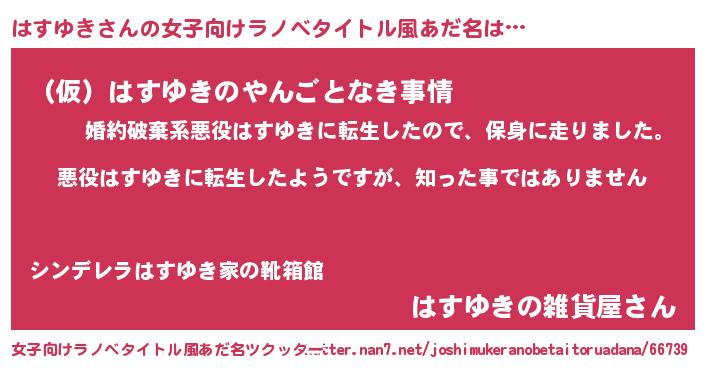 | 意味不明あだ名 | 『住所不定無職はすゆき(10歳)』 |
