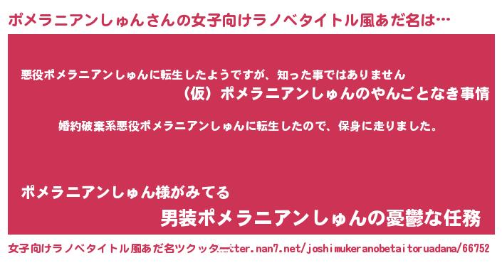| 男性向けラノベタイトル風あだ名 | 『ポメラニアンシュンスレイヤー』 |