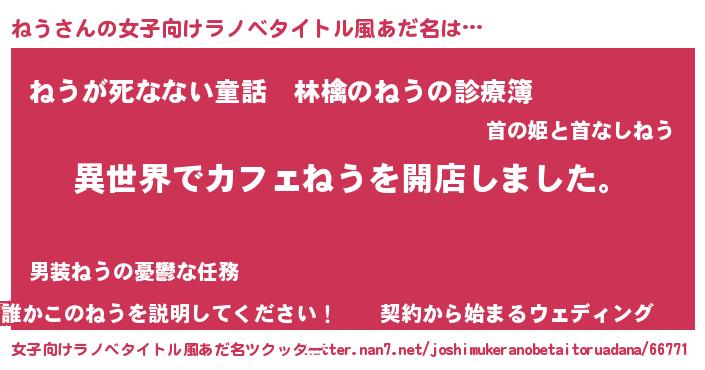 | 男性向けラノベタイトル風あだ名 | 『誰もが恐れるあのねうが、ぼくの専属メイドになるようです。』 |