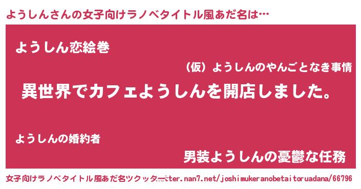 | ヒーロー風カッコイイあだ名 | 『ネオヨウシン』『愛の使者ようしん』 |