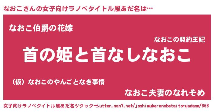 | ファンタジー風あだ名 | 『エターナルナオコー』『クインナット』 |