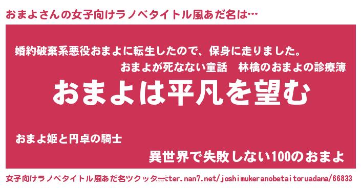 | 胡散臭い通販商品みたいなあだ名 | 『信頼と実績のネックレス…その名も「おまよ」』 |