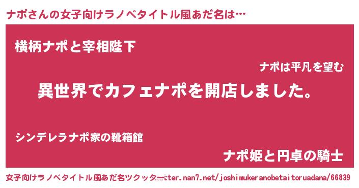 | 男性向けラノベタイトル風あだ名 | 『誰もが恐れるあのナポが、ぼくの専属メイドになるようです。』 |