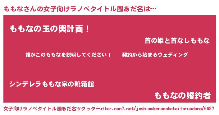 | 男性向けラノベタイトル風あだ名 | 『モモナアートオンライン』 |