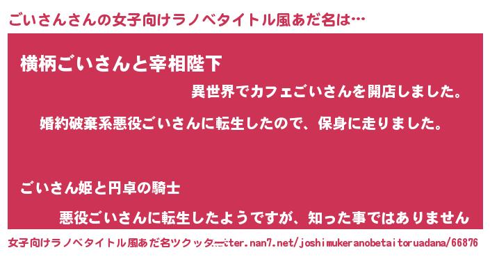 | 胡散臭い通販商品みたいなあだ名 | 『世界中を虜にした100年もののヴィンテージワイン…その名も「ごいさん」』 |