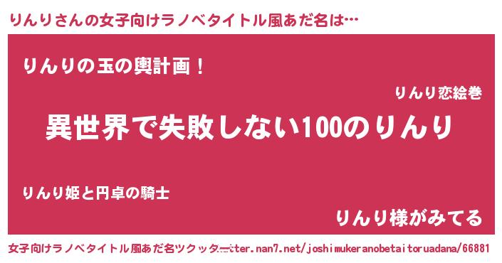 | 男性向けラノベタイトル風あだ名 | 『りんりという概念が存在しない退屈な世界 』 |