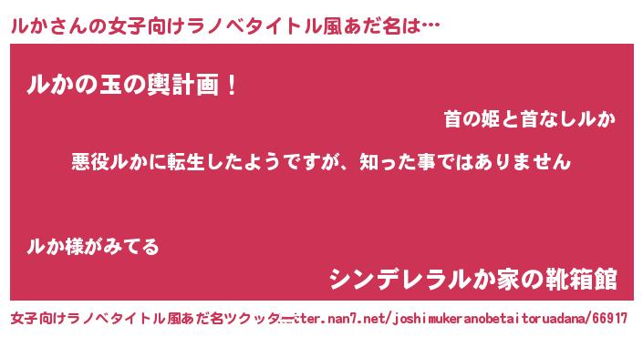 | ヘコむあだ名 | 『ルかっちょ』『ルか(笑)』 |