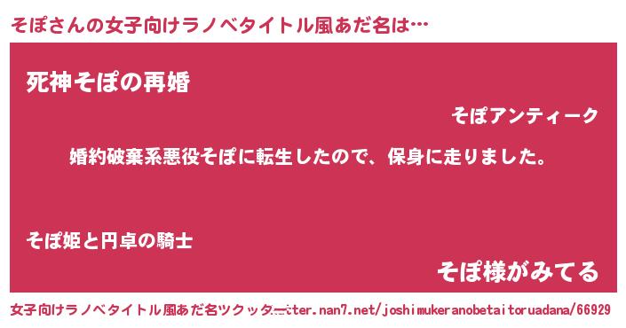 | 男性向けラノベタイトル風あだ名 | 『転生したらそぽだった件』 |