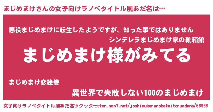 | 男性向けラノベタイトル風あだ名 | 『まじめまけの嫁は女の子じゃないと思った?』 |