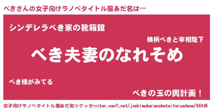 | 男性向けラノベタイトル風あだ名 | 『おまえをオタクにしてやるから、俺をべきにしてくれ! 』 |