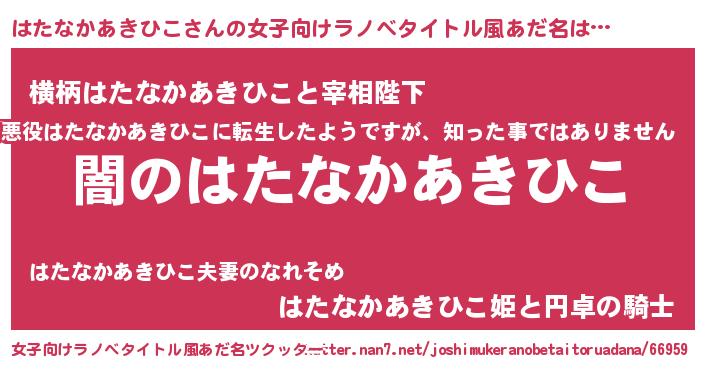 | 意味不明あだ名 | 『自称はたなかあきひこ』 |