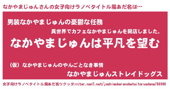 | 男性向けラノベタイトル風あだ名 | 『ダンジョンになかやまじゅんを求めるのは間違っているだろうか』 |