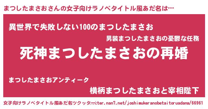 | 男性向けラノベタイトル風あだ名 | 『ノーゲーム・ノーマツシタマサオ』 |