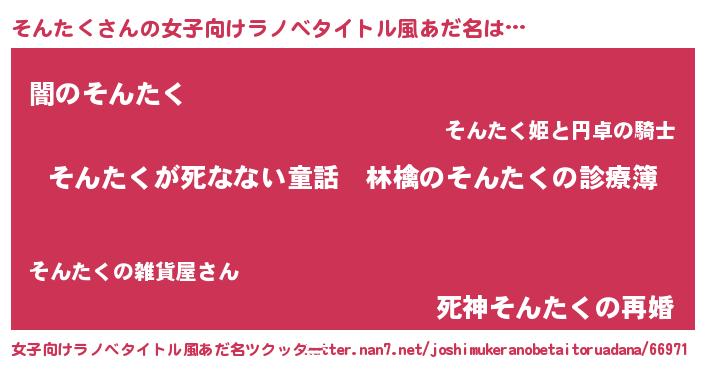 | 男性向けラノベタイトル風あだ名 | 『魔弾の王とそんたく』 |