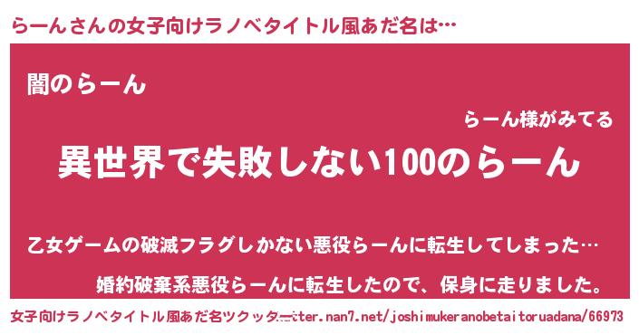 | 男性向けラノベタイトル風あだ名 | 『らーんという概念が存在しない退屈な世界 』 |