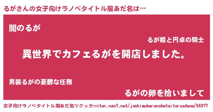 | 男性向けラノベタイトル風あだ名 | 『誰もが恐れるあのるがが、ぼくの専属メイドになるようです。』 |