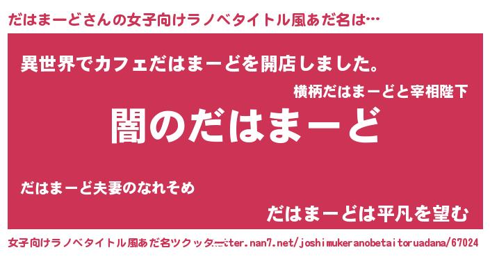 | 男性向けラノベタイトル風あだ名 | 『Re:だはまーどから始める異世界生活』 |