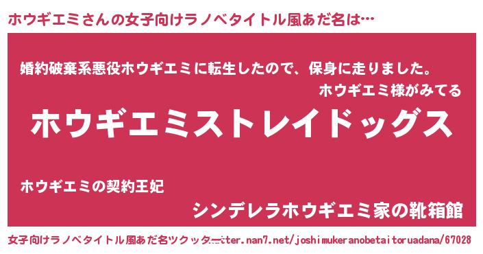 | 男性向けラノベタイトル風あだ名 | 『Re:ホウギエミから始める異世界生活』 |