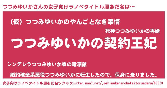 | 胡散臭い通販商品みたいなあだ名 | 『来世でも幸せになれる健康食品…その名も「つつみゆいか」』 |